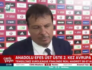 Turkish Airlines EuroLeague Final Four'da Anadolu Efes, final karşılaşmasında Real Madrid'i 58-57 mağlup ederek üst üste 2'nci kez Euroleague şampiyonu oldu. Mücadelenin ardından Anadolu Efes Baş Antrenörü Ergin Ataman ile 23 sayıyla karşılaşmanın en skorer ismi Vasilije Micic, Stark Arena'da düzenlenen basın toplantısında açıklamalarda bulundu.
