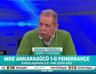 A Spor yorumcusu Erman Toroğlu, MKE Ankaragücü - Fenerbahçe maçının ilk yarısını değerlendirdi. Toroğlu, "Fenerbahçe'nin yediği golde Altay Bayındır'ın büyük hatası var." ifadelerini kullandı.