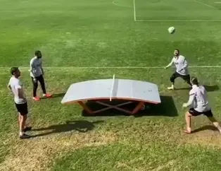 Galatasaray teknik ekibi ayak tenisinde şov yaptı!