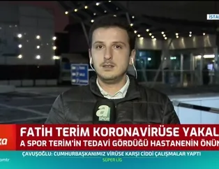 Galatasaray Teknik Direktörü Fatih sosyal medya hesabından yaptığı paylaşımla corona virüsü testinin pozitif çıktığını duyururken Terim'in tedavi gördüğü hastanenin önünden son bilgileri aktaran A Spor muhabiri Emre Kaplan, tecrübeli teknik adamın corona virüsü bulgularından sadece öksürüğü taşıdığını ve yoğun bakımlık bir durumunun olmadığını söyledi.