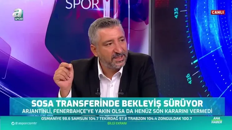 A Spor yorumcusu Serdar Sarıdağ, Ana Haber'de Trabzonspor'un gündemine dair değerlendirmelerde bulundu. Sarıdağ, "Sosa, önceliğini Trabzonspor'a verir ve Trabzon'da kalmak ister." dedi.