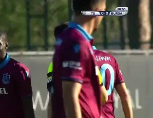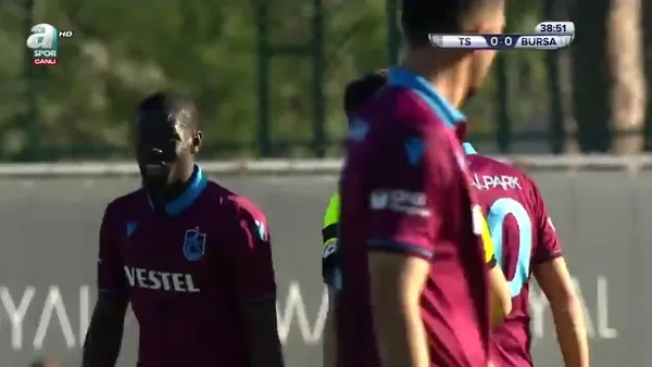 Trabzonspor'un genç oyuncusu Kerem Baykuş, 40. dakikada sakatlanarak yerini Onazi'ye bıraktı.