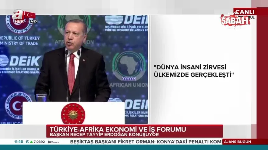 Cumhurbaşkanı Recep Tayyip Erdoğan Türkiye Afrike Ekonomi Forumu'nda konuştu. Cumhurbaşkanı Erdoğan, Türkiye'nin Afrika'daki varlığına dikkat çekerek "DEAŞ, Boko Haram gibi terör örgütlerinin faaliyetlerinin arttığı dönemlerde yine ülkemizde toplantılar icra ettik. Askeri işbirliklerinden, öğrenci burslarına kadar oldukça geniş bir yelpazede işbirliğimizi derinleştirmeye çalıştık. Dünyadaki en büyük temsilciği Afrika'da açtık. Kıtadaki varlığımızı yaygınlaştırdık. 11 ülkede 12 müşavirimiz var iken 26 ülkede 37 müşavirimiz var" dedi.