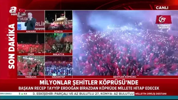 Cumhurbaşkanı Recep Tayyip Erdoğan, kürsüye ‘Bil Oğlum' Türküsü ile çıktı. Cumhurbaşkanı Erdoğan konuşmasına başlamak için türkünün bitmesini bekledi. Vatandaşlar ellerinde Türk bayrağıyla türküye eşlik etti.