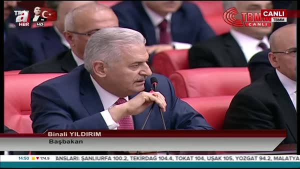 "Burada ana muhalefet partisinin hatibi şahsımı hedef alarak darbe gecesi benim tanklar eşliğinde evimden çıkarıldığımı emniyetli bir yere götürüldüğümü ifade etmiştir. O geçenini gerçeği şudur: O gece tanklar senin genel başkanına yol verirken bu ülkenin başbakanı uçaklara 'Alçakları vurun' demiştir. Bu mücadeleyi yapmıştır."