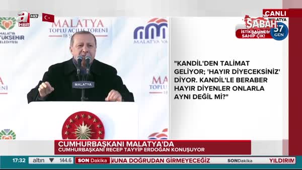 Cumhurbaşkanı Recep Tayyip Erdoğan, Malatya'da toplam yatırım bedeli 1 milyar 162 milyon liralık toplu açılış töreninde konuştu.