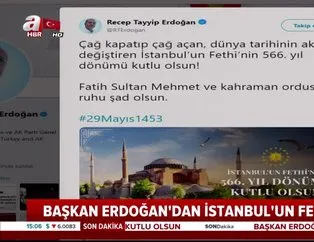 Cumhurbaşkanı Erdoğan "Çağ kapatıp çağ açan, dünya tarihinin akışını değiştiren İstanbul’un Fethi’nin 566. yıl dönümü kutlu olsun"