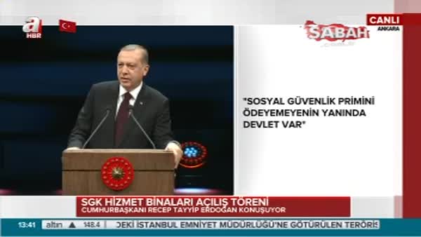 Cumhurbaşkanı Recep Tayyip Erdoğan, Cumhurbaşkanlığı Külliyesi'nde, Çalışma ve Sosyal Güvenlik Bakanlığınca yapımı tamamlanan SGK hizmet binalarının toplu açılış töreninde konuştu.