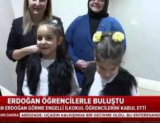 Başkan Erdoğan Ankara'da Çorlu Ticaret ve Sanayi Odası İlkokulu'nda öğrenim gören görme engelli çocukları kabul etti. Buluşmada sıcak görüntüler kayda geçti.