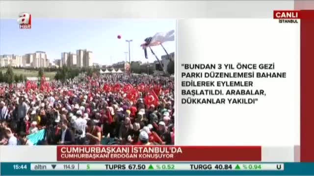 Cumhurbaşkanı Erdoğan, İstanbul'un Esenler ilçesinde Kentsel Dönüşümü tamamlanan ilk konutların teslim töreninde konuştu. Erdoğan: "Bugün Paris'i görüyorsunuz.. Orada insanların demokratik tepki süreçlerine izin vermeyen Paris'i kınıyorum. Paris'te özgürlük mücadelesi verenler, Brüksel özgürlük mücadelesi verenlere niye böyle yapıyorsunuz... İnşallah olaylar bölücü terör örgütünün doğu illerimizde yaptıklarına kadar uzanmaz.. Evet Paris'ten endişeliyim" dedi.