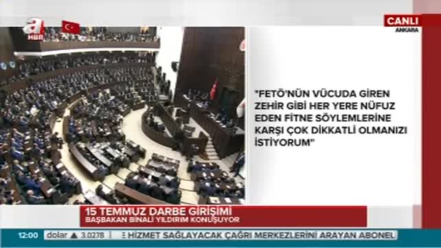 Başbakan Binali Yıldırım, bir buçuk aylık tatilin ardından 26. dönemin ilk grup toplantısında konuşuyor.