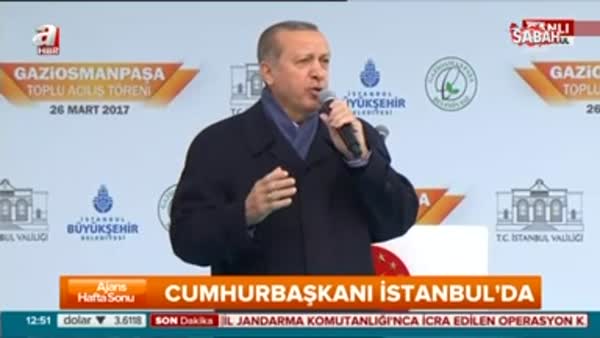 Cumhurbaşkanı Recep Tayyip Erdoğan İstanbul Gaziosmanpaşa'da toplu açılış töreninde halka hitap etti.