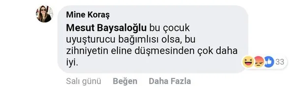 Yaptığı paylaşımın altına gelen yorumlara cevap veren Koraş, "Bu çocuk uyuşturucu bağımlısı olsa, bu zihniyetin eline düşmesinden çok daha iyi" sözleriyle bir skandala daha imza attı.