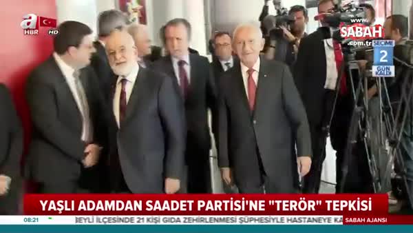 24 Haziran seçimleri için CHP'nin başını çektiği millet ittfakının içinde yer alan Saadet Partisi seçmenlerinin partililerin tepkisini çekmişti. Hatta teröristlere destek verenlerle aynı safta yer aldığı için Saadet Partisi'nden istifa edenler bile oldu. Bu kez istifa haberi glemedi ama tepki vardı. Bursa'da merhum Necmettin Erbakan'ın öğrencisi olduğunu iddia eden yaşlı bir adam Saadet Partisi'ne ateş püskürdü!.. Temel Karamollaoğlu'na sert terör tepkisi gösteren yaşlı adama çevredeki vatandaşlar alkışlarla destek verdi. İşte o anlar...