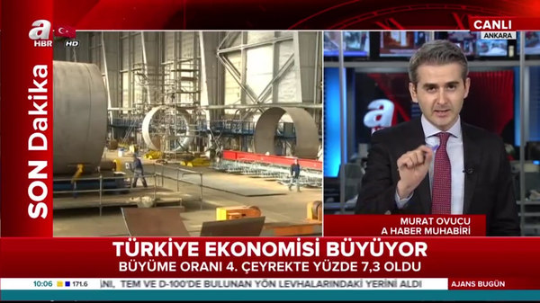 Son dakika haberi... Türkiye ekonomisi için 2017 yılı büyüme oranı açıklandı. Üretim yöntemine göre dört dönem toplamıyla elde edilen yıllık Gayrisafi Yurt İçi Hasıla (GSYH), zincirlenmiş hacim endeksi olarak 2017 yılında bir önceki yıla göre yüzde 7,4 arttı. A Haber Muhabiri Murat Ovucu son gelişmeleri canlı yayında aktardı.