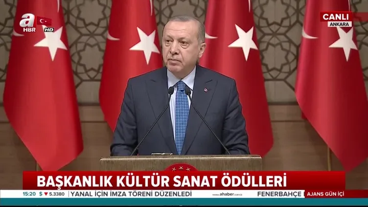 Cumhurbaşkanı Recep Tayyip Erdoğan, Başkanlık Kültür Sanat Ödülleri programında konuştu. Konuşmasında kültür ve sanatın önemine dikkat çeken Cumhurbaşkanı Erdoğan, ülkelerin bağımsızlığı için kültür sanatın tıpkı ordu, bayrak, para gibi gibi önemli olduğunu söyledi.