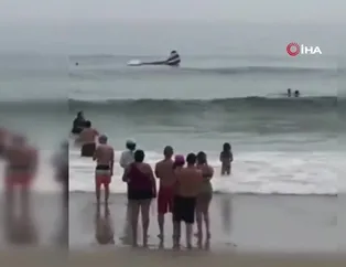 ABD’nin New Hampshire eyaletinde çok sayıda kişinin bulunduğu plajda küçük uçak denize çakıldı.