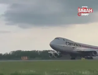 Acil iniş yapan kargo uçağının iniş takımı koptu | Video