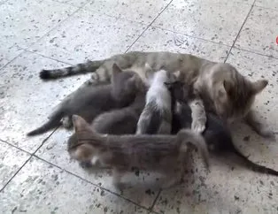 Iğdır’da bir esnaf, hamile olan ve doğum yapmak üzereyken bulduğu anne kedi ve yavrularını sahiplendi.