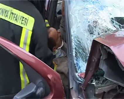 Araçta sıkışıp kalan sürücüyü itfaiye kurtardı