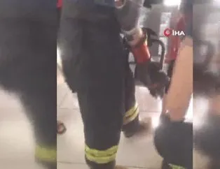 Ayağı banka sıkışan çocuğu itfaiye kurtardı | Video