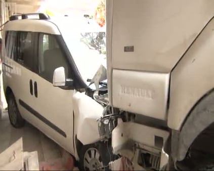 Başkent'te, freni boşalan TIR, yokuş aşağı park halindeki 9 araca hasar verdikten sonra bir binaya çarparak durabildi.