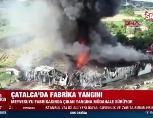 Çatalca'da bulunan bir meyve suyu fabrikasında yangın çıktı. Fabrikadan çıkan dumanlar ise adeta gökyüzü kapladı.