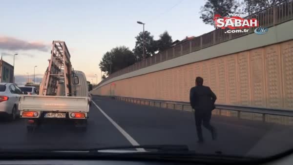 E-5’te otobüse yetişmek için koşan vatandaş ilginç görüntüler oluşturdu