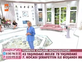 ATV’nin ilgiyle takip edilen ‘Esra Erol’da’ programında bu hafta yine akıllara durgunluk veren bir olay yaşandı. Esra Erol’a katılan 43 yaşındaki Melek Karadağ, yedinci kocası Şerafettin’le boşanma kararı aldı. Melek Hanım, geçtiğimiz hafta çok sevdiği ve büyük aşk yaşadığı kocasından ayrılmak istediğini açıkladı. Bu hafta programa gelen Melek Hanım, boşanmaktan vazgeçtiğini belirtti. Telefonla canlı yayına katılan Şerafettin Amca’nın damadı Melek Hanım ile ilgili inanılmaz iddialar ortaya attı. İşte Esra Erol’da yaşananlar!