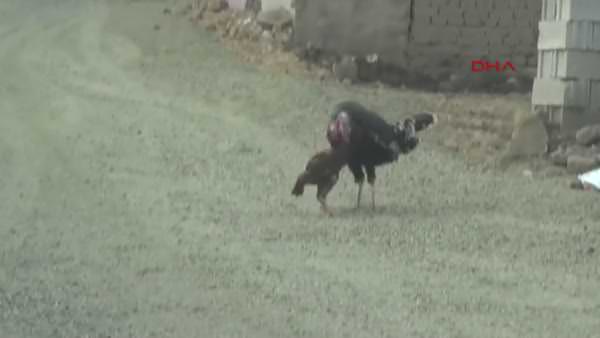 Iğdır'da yol ortasında kavga eden hindi ve horozu görenler şaşkınlıklarını gizleyemedi. Vatandaşların ilgiyle izlediği ve yaklaşık 10 dakika süren kavganın galibi horoz oldu.