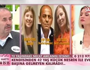 ATV'nin ve Türkiye'nin en çok izlenen ve beğenilen programlarından Esra Erol'da her hafta farklı konular ele alınıyor. Bugün Esra Erol'da programına Necat Bey’in anlattıkları programa damga vurdu. Necat Sağlam kendisinden 42 yaş küçük Nesrin ile evlendi. Almanya’ya gitmek isteyen Nesrin Hanım’a yardım etmek isteyen Sağlam, yaşadıklarını anlattığında gözyaşlarına boğuldu. Necat Bey, “ Ben onlara yardım etmek istedim. Herkese acıyorum ben ya! Bu kaçıncı biliyor musunuz? Bu dördüncü” diye konuştu. İşte detaylar!