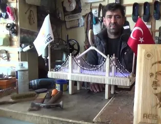 Adıyaman’da ayakkabı tamirciliği yapan Zeynel Kocakaya, ahşaptan yaptığı 15 Temmuz Şehitler Köprüsü maketi ile ahşaba işlediği Cumhurbaşkanı Recep Tayyip Erdoğan’ın resmini Cumhurbaşkanına hediye etmek istiyor.
