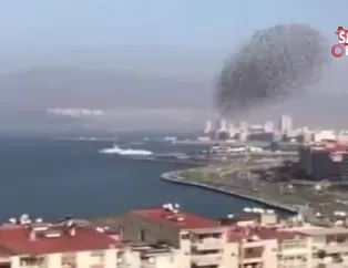 İzmir’de sığırcık kuşlarının gökyüzündeki dansı adeta izleyenlere görsel bir şölen sundu.