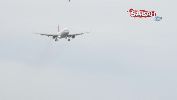 Lodos nedeniyle pisti pas geçen uçak kamerada