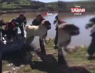Şanlıurfa’nın Viranşehir ilçesinde derenin kenarındaki kayalıkta mahsur kalan kuzu, itfaiye tarafından bot yardımıyla kurtarıldı.