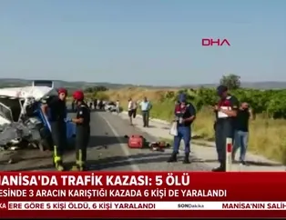 Manisa'nın Salihli ilçesinde üç aracın karıştığı kazada ilk belirlemelere göre 5 kişi öldü, 6 kişi yaralandı.