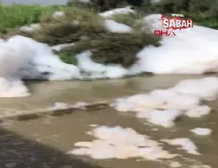 Mersin'in Tarsus ilçesindeki Kusun Deresi, dökülen kimyasal atık nedeniyle köpürdü. Olayla ilgili soruşturma başlatılırken, yetkililer deredeki sudan numune aldı.