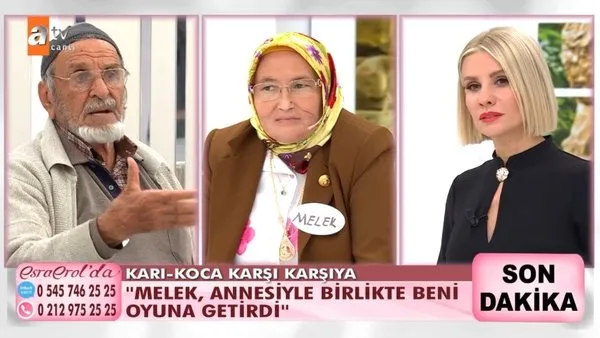 ATV’nin fenomen programları arasında yer alan Esra Erol’da bugün Melek Hanım’ın konusu ele alındı. 43 yaşındaki Melek Hanım aşkı, 78 yaşındaki yedinci kocası Şerafettin amcada bulduğunu, ancak eşinin çocuklarının aralarına girdiğini belirterek Esra Erol’dan yardım istedi. Ünlü sunucu, Şerafettin amcayı bularak bugün canlı yayına davet etti. İkili arasında yaşananlar akıllara durgunluk verdi. İşte Esra Erol’da bugün yaşananlar!