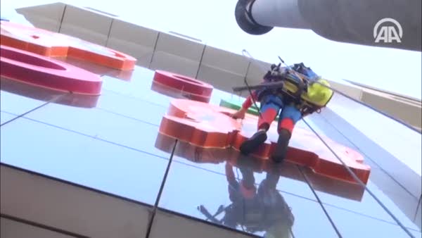 "Örümcek Adam" camları temizliyor