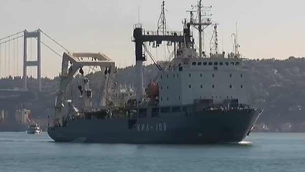 Rus Donanması'na ait KIL-158 borda numaralı askeri gemi, Karadeniz'den İstanbul Boğazı'na girerek Marmara Denizi'ne açıldı. Geniş güvenlik önlemleri arasında boğazdan geçen geminin güvertesinde üstü kamufle edilmiş 2 adet tank olduğu dikkat çekti. Rus Donanması'na ait KIL-158 borda numaralı askeri gemi, saat 08.30 sıralarında İstanbul Boğazı'ndan geçerek Marmara Denizi'ne doğru açıldı. Geniş güvenlik önlemleri arasında İstanbul Boğazı'ndan geçen geminin geçişine, denizden Sahil Güvenlik Komutanlığı'na bağlı gemi ile deniz polisi, havadan ise polis helikopteri eşlik etti.
