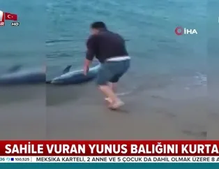 Sahile vuran yunus balığını kurtardı