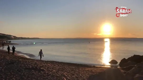 Türkiye’nin en kuzey ucu Sinop’ta vatandaşlar, denizin üzerinden batan güneşin eşsiz manzarasını izlemek için Kumkapı Plajı'nı ziyaret ediyor.