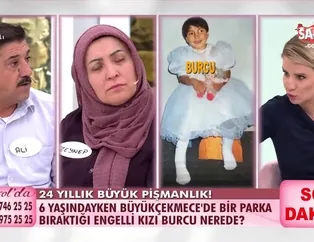 Son Dakika: ATV’nin reyting rekortmeni programı ‘Esra Erol’da’, dün Zeynep Ö.’nün engelli kızını henüz 6 yaşındayken terk ettiği konusu ele alındı. Esra Erol’Un programına katılan Zeynep Hanım, 25 Eylül 1998 tarihinde terk ettiği kızını aradığını belirterek ünlü sunucudan yardım istedi. Dün programda anne Zeynep, eşinin sorumsuz bir kişi olduğunu ve çocuğuna bakmakta zorlandığı için parka bıraktığını söyleyerek çok pişman olduğunu belirtti. Bugün ise canlı yayında bir mucize gerçekleşti. Ünlü sunucu Erol, parkte terk edilen engelli Burcu’nun bulunduğunu Zeynep Hanım’a açıkladı. Anne, Erol’un verdiği bu haberi duyar duymaz gözyaşlarına boğuldu. İşte ayrıntılar!