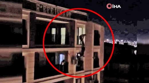 Öte yandan yaşanan hareketli anlar bir cep telefonu kamerası tarafından görüntülendi. Görüntüde apartmanın 5. katından aşağı atlamaya çalışan kadının, alt katta bulunan apartman sakini tarafından tutulduğu görüldü.