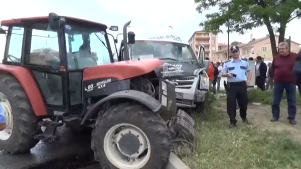 Traktör minibüsle çarpıştı 6 yaralı