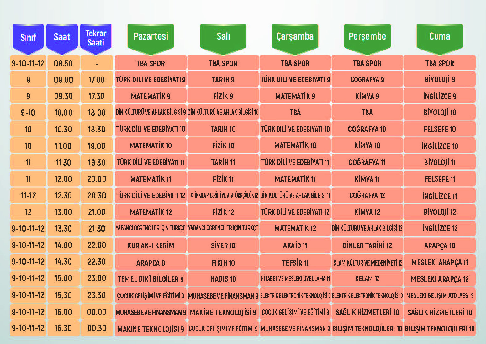 EBA TV LİSE DERS PROGRAMI YAYIN SAATLERİ 23 KASIM - 27 KASIM
