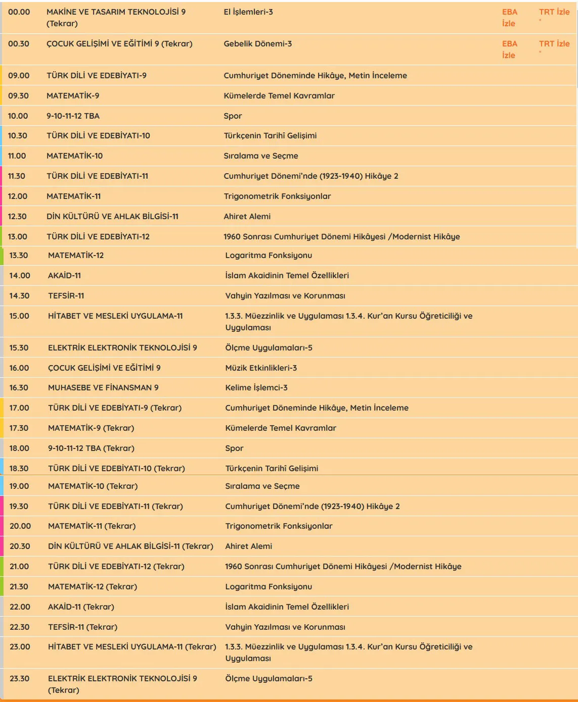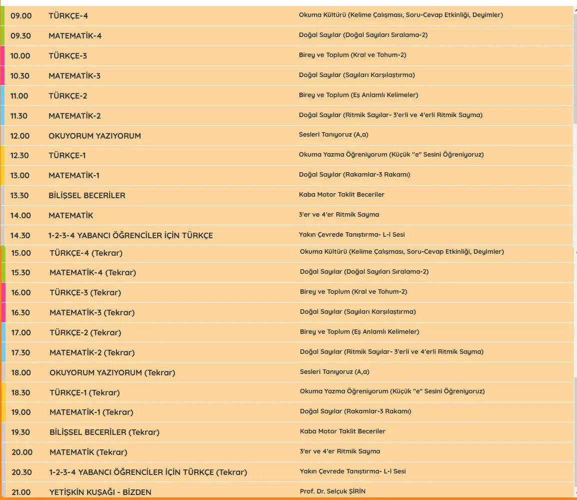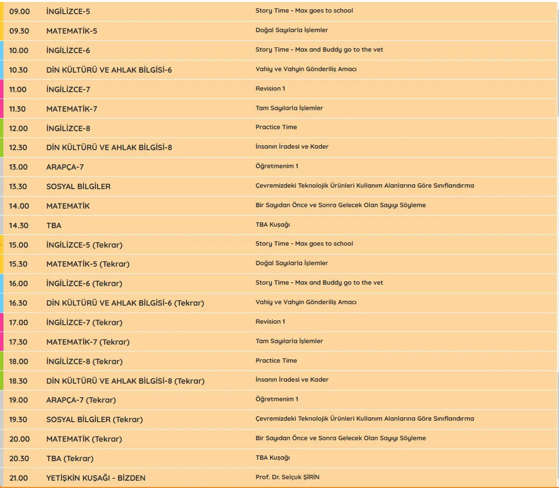 EBA UZAKTAN EĞİTİM DERS PROGRAMI DERS SAATLERİ (İLKOKUL LİSE ORTAOKUL) TÜM SINIFLAR