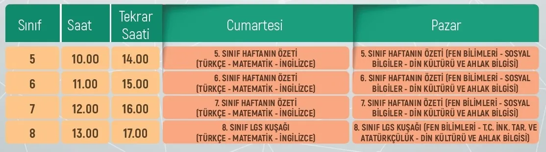 EBA ORTAOKUL DERS PROGRAMI YAYIN SAATLERİ 30 KASIM - 6 ARALIK 2020