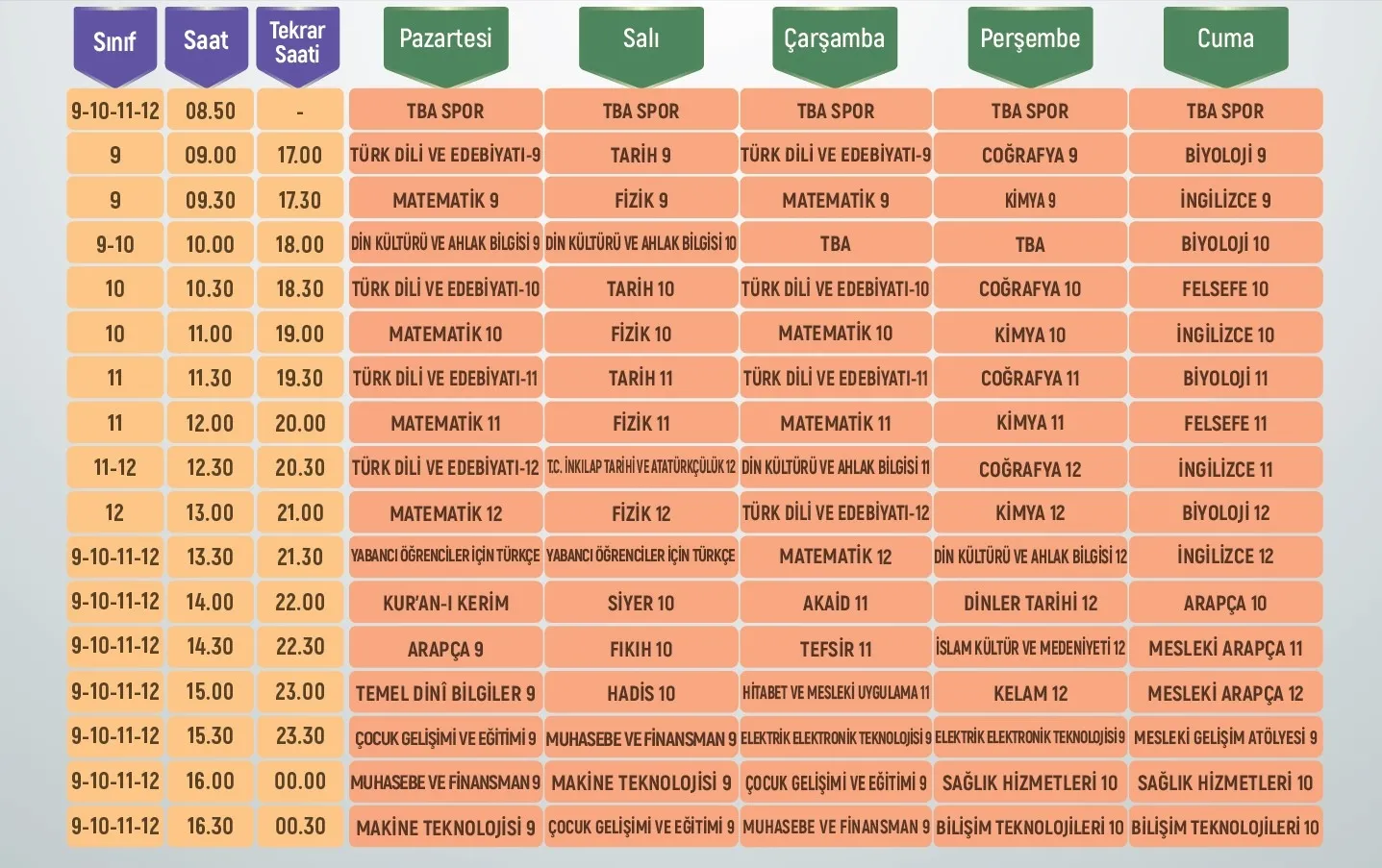 EBA TV LİSE DERS PROGRAMI YAYIN SAATLERİ 26 EKİM - 31 EKİM