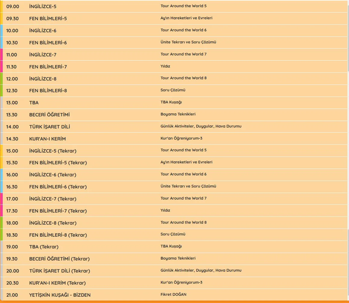 EBA TV 9 EKİM 2020 CUMA ORTAOKUL DERS PROGRAMI TÜM SINIFLAR DERS SAATLERİ